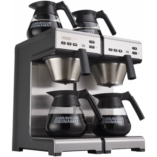 Ausführung: Hochgeschwindigkeits-Filtermaschine. Die selbstregulierenden Heizplatten passen die Temperatur an die Kaffeemenge in der Kanne an. So können Sie Kaffee von gleichbleibender Qualität servieren. Ausgestattet mit digitaler Steuerung, Kaffeebereitschaftssignal und Entkalkungsanzeige. Inklusive Glaskannen und Edelstahl-Filterschale(n). Puffervorrat von 4 Kannen (48 Tassen). Stundenleistung in Liter: ca. 30 (ca. 240 Tassen). Brühzeit in Minuten: ca. 6 pro 2 Kannen.