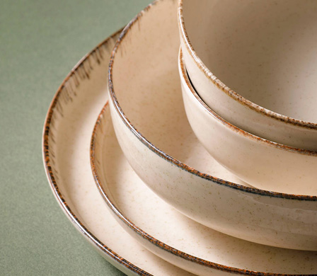 Palmer Antigo ist eine widerstandsfähige, aber dennoch elegante Kollektion. Antigo besteht aus 2 flachen Tellern, einem tiefen Teller und einer Schale. Außerdem gibt es einen Becher für Kaffee und Tee. Wenn Sie sich für Palmer Antigo entscheiden, haben Sie alles, was Sie für die Präsentation verschiedener Gerichte brauchen, in einem praktischen Set.