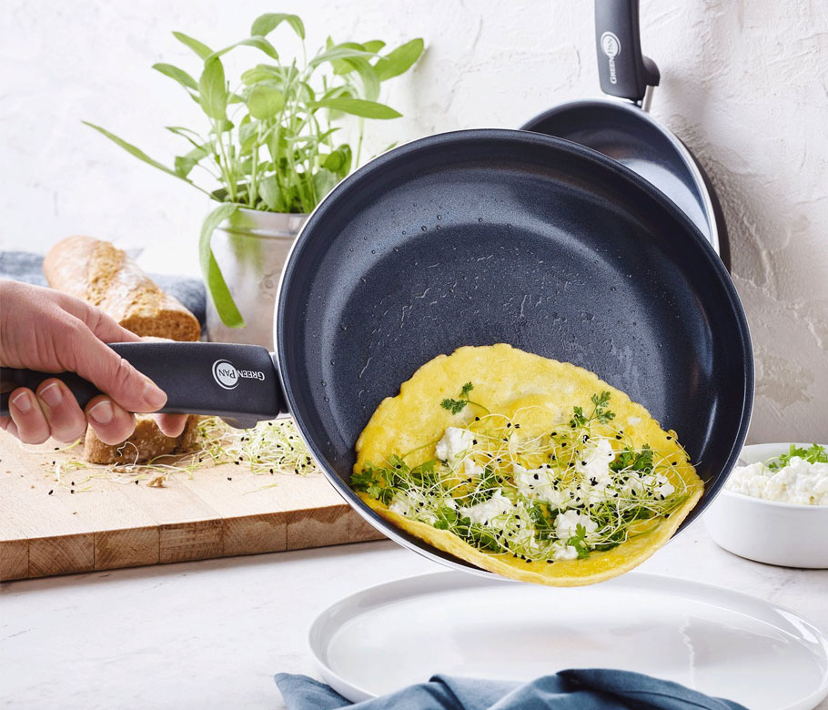 Die meistverkaufte Pfanne von Greenpan ist die Bratpfanne. Das liegt daran, dass alle Bratpfannen eine Thermolon™-Antihaftbeschichtung haben. Diese keramische Antihaftbeschichtung bedeutet, dass Sie weniger Butter und Öl verwenden müssen. Greenpan Bratpfannen gibt es in verschiedenen Größen, von 20 cm bis 32 cm.